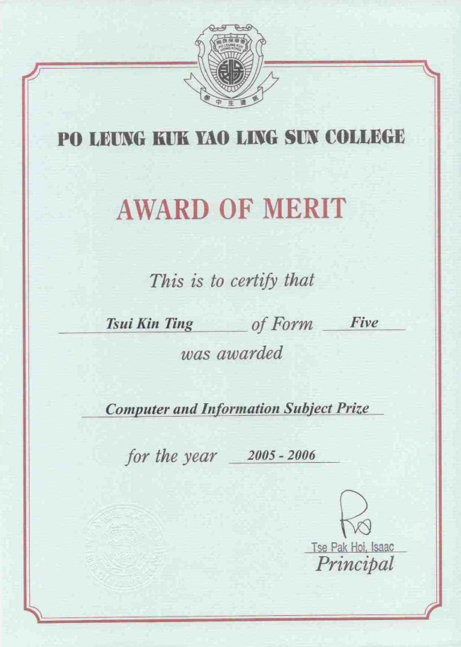 This certificate was awarded in 2006 when I was form