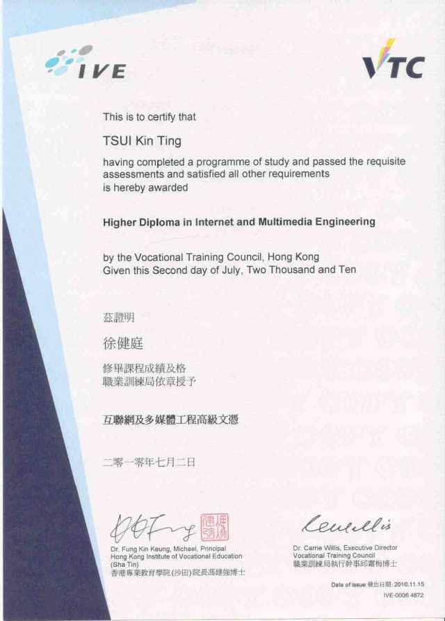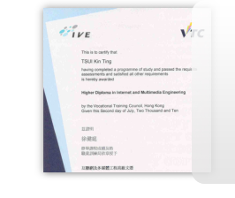 I have completed the Higher Diploma in Internet and Mutlimedia Engineering and received from IVE.