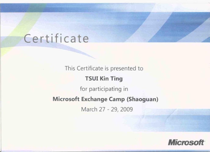 Microsoft Exchange Camp Certificate